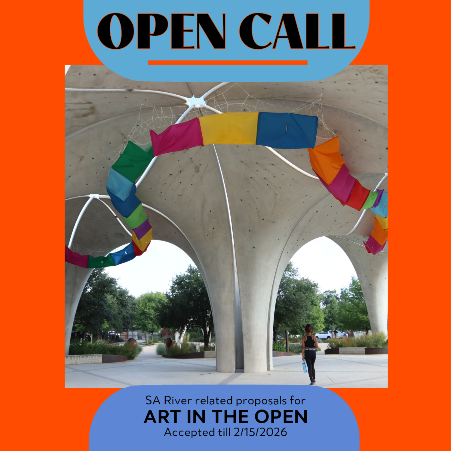 The San Antonio River Foundation (SARF) seeks proposals from visual artists, collectives, and collaborations for the 2026 Art In the Open program. Art In the Open is designed to support artists with new exhibition or performance opportunities in outdoor or natural environments while providing vibrant art experiences to the San Antonio River community and its visitors. Proposals may include designing and installing site-specific and temporary or ephemeral artworks, installations, or performance(s)*.