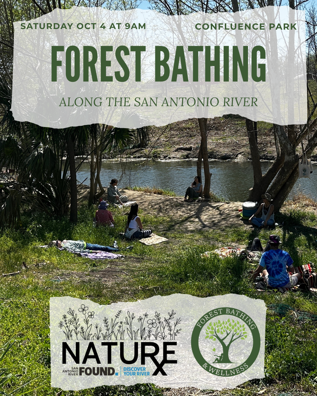Welcome to Nature Rx: Forest Bathing at Confluence Park! Join in community for a rejuvenating outdoor experience and immerse yourself in nature. Guided by Gina Ruiz of Forest Bathing and Wellness, we’ll explore forest bathing with an introduction to the practice, a sensory meditation (Pleasures of Presence), and tea under the trees. Sit spots and blankets will be provided for your comfort, but feel free to bring your own mat. Unwind, connect, and recharge in the serene beauty of Confluence Park along the San Antonio River.