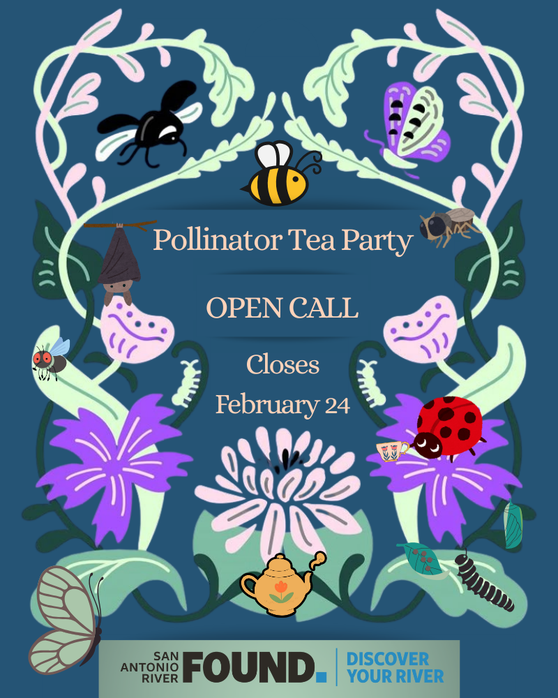 The San Antonio River Foundation invites submissions for our annual Pollinator Tea Party Festival, and we hope you all can be part of this important zero-waste SARF family-friendly event at Confluence Park on Saturday, April 11, 2026, from 6 – 10 PM. Our mission is to promote sustainability, highlight zero-waste strategies, and educate the community on pollinators in a fun event for all ages and abilities.